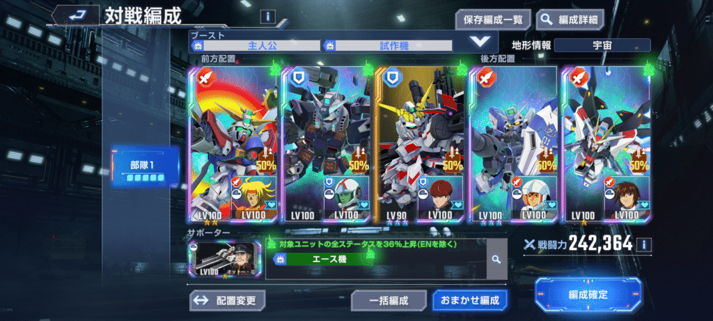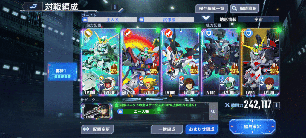 代わりにハイニュー(攻撃)を投入しました。サポート効果は受けられませんが、完凸しているので火力には期待。お茶を濁しつつの採用です。
