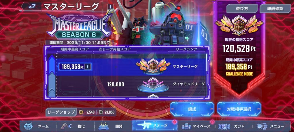 【GジェネE】マスターリーグS6終了!感想・まとめ