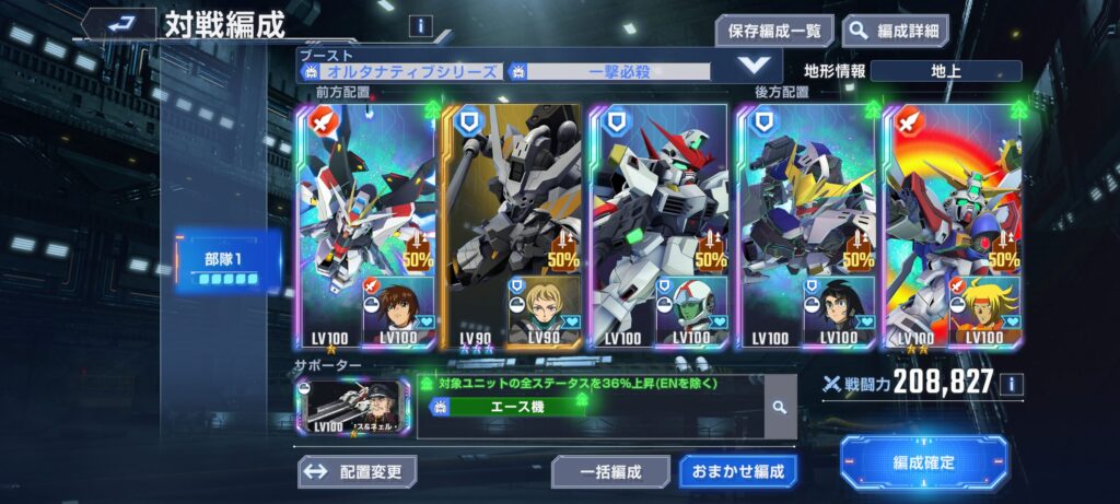 また、後半からフリーダムが編成されてる事が多く、スウェーを使用されるとこちらが通常武装だと回避されてしまうという展開もよくありました。