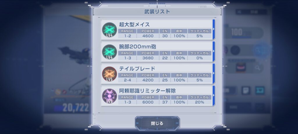 開発産オンリー編成では 18万スコアまで到達と、思った以上に健闘できましたが、やはり高スコア帯に入ると敵の防御が固く、必中EXの重要性を改めて痛感しました。