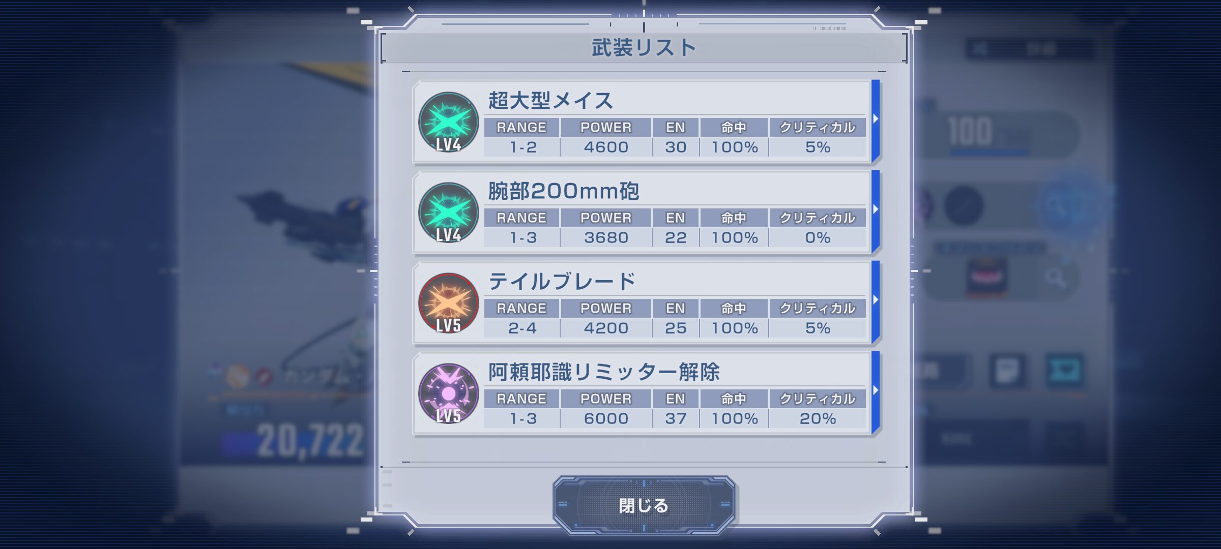 かたやSP化バルバトス。暴れてくれると思いきや、最高火力の阿頼耶識リミッター解除が射程が1-3に加え、テンションの条件付きのため発動せず、テイルブレードしかでなかったので火力が伸びず早々に外してしまいました。やはりテンション条件付きはマスターリーグとの相性は微妙かもしれません。